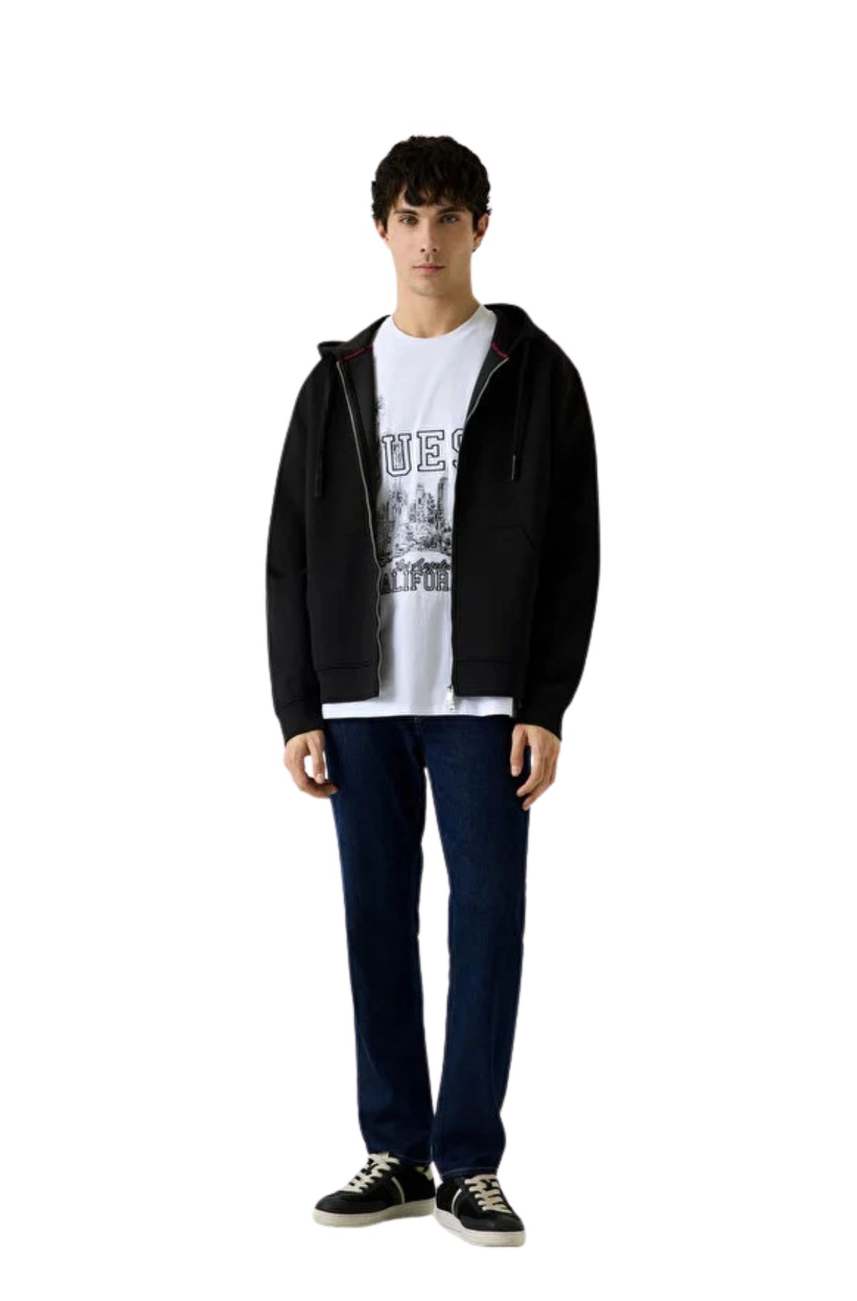 Η ανδρική μαύρη φόρμα Guess με μακριά μανίκια, New Technical Stretch, φερμουάρ και κουκούλα, είναι ένα υψηλής απόδοσης εξωτερικό στρώμα που συνδυάζει έναν σύγχρονο, δραστήριο τρόπο ζωής με την πολυτελή φιλοσοφία σχεδιασμού της Guess. Μέρος της σειράς “New Technical Stretch” της μάρκας, αυτή η φόρμα συνδυάζει το διαχρονικό μαύρο (JBLK) χρώμα με προηγμένες ιδιότητες υφάσματος. Κατάλληλη τόσο για τις αθλητικές σας δραστηριότητες όσο και για τα δυναμικά outfits στην πόλη.
