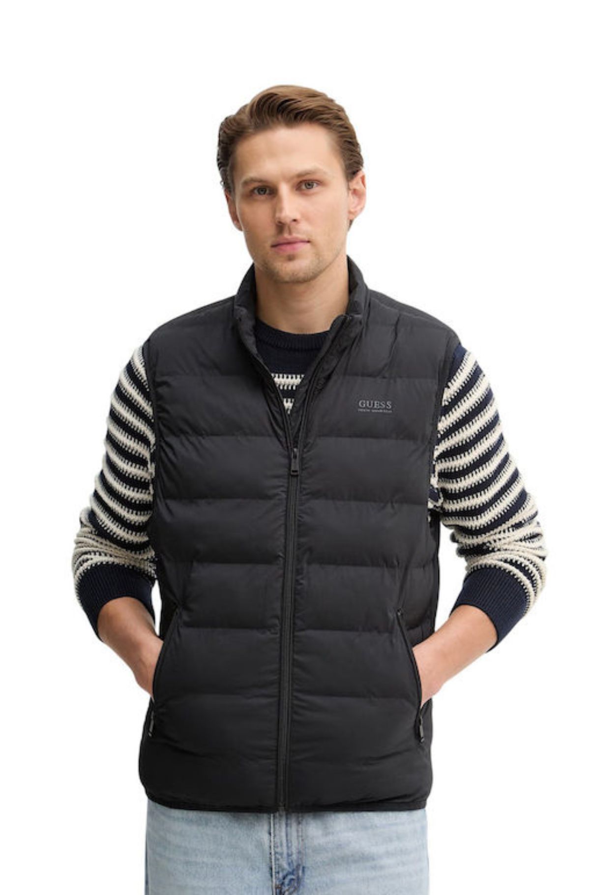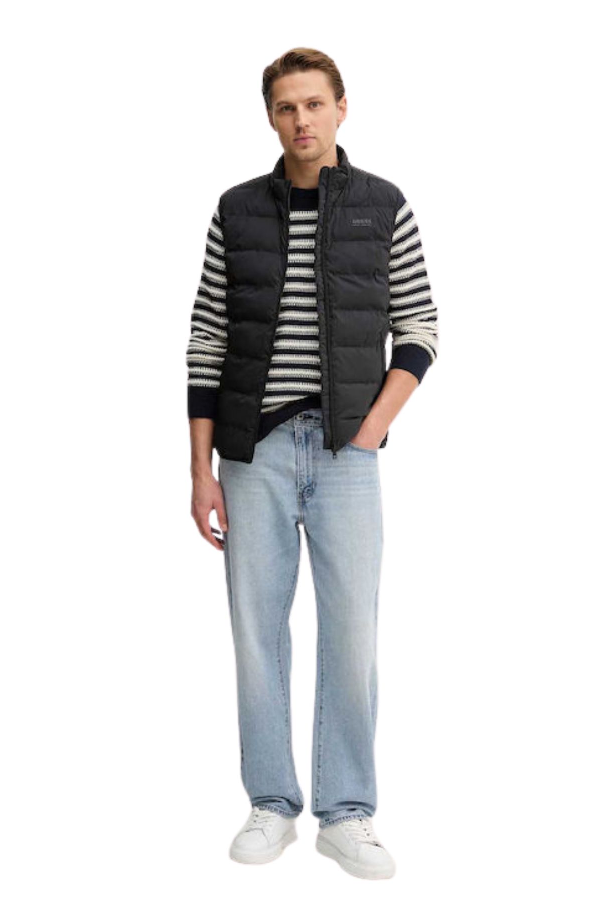 Αυτό το ανδρικό αμάνικο μπουφάν από την Guess σε μαύρο χρώμα είναι η ιδανική επιλογή για τις ανοιξιάτικες και φθινοπωρινές ημέρες. Είναι ελαφρύ και σχεδιασμένο για να προσφέρει άνεση και στυλ κατά τη διάρκεια των μεταβατικών μηνών. Η casual και κομψή του γραμμή το καθιστά εξαιρετική επιλογή για καθημερινές εμφανίσεις.