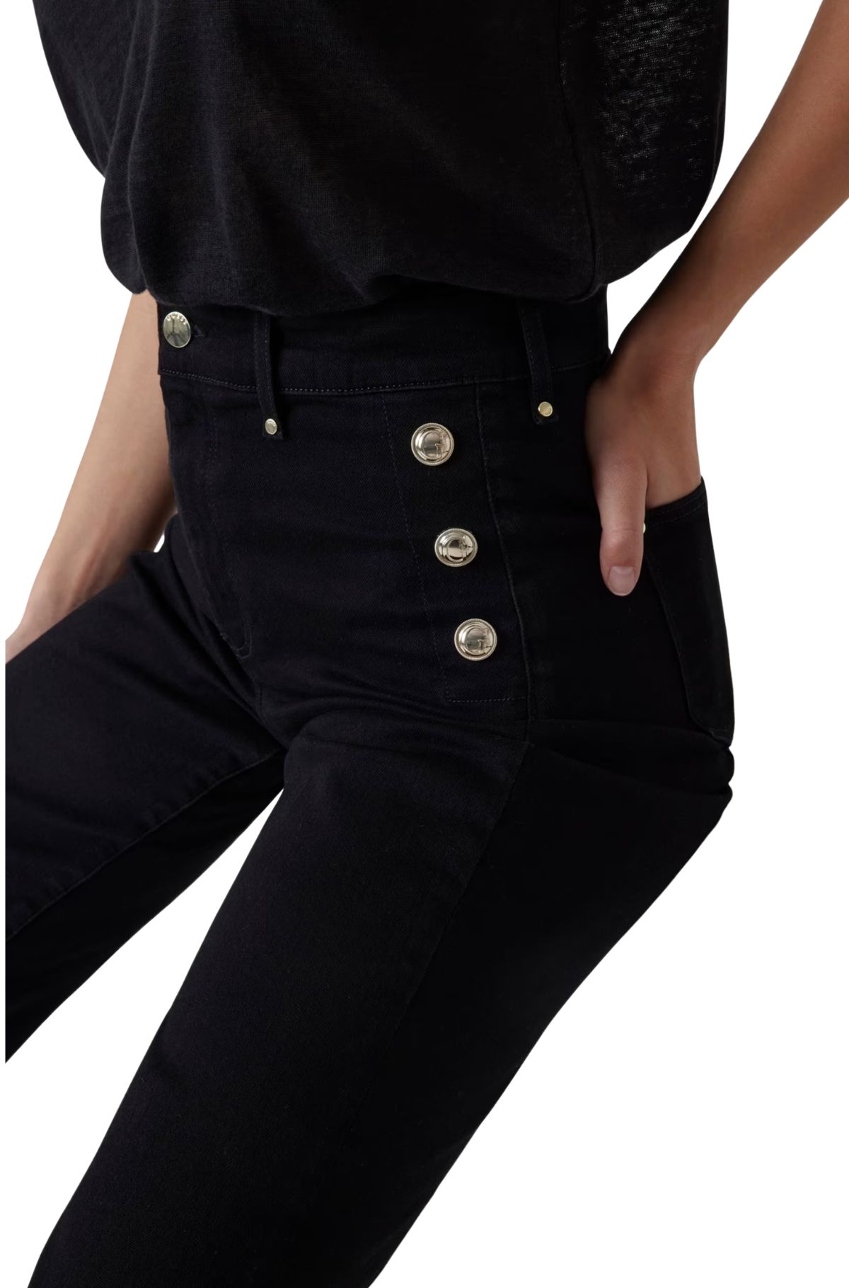 - Διακοσμητικά κουμπιά στις λοξές πλευρικές τσέπες.