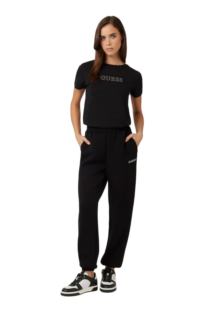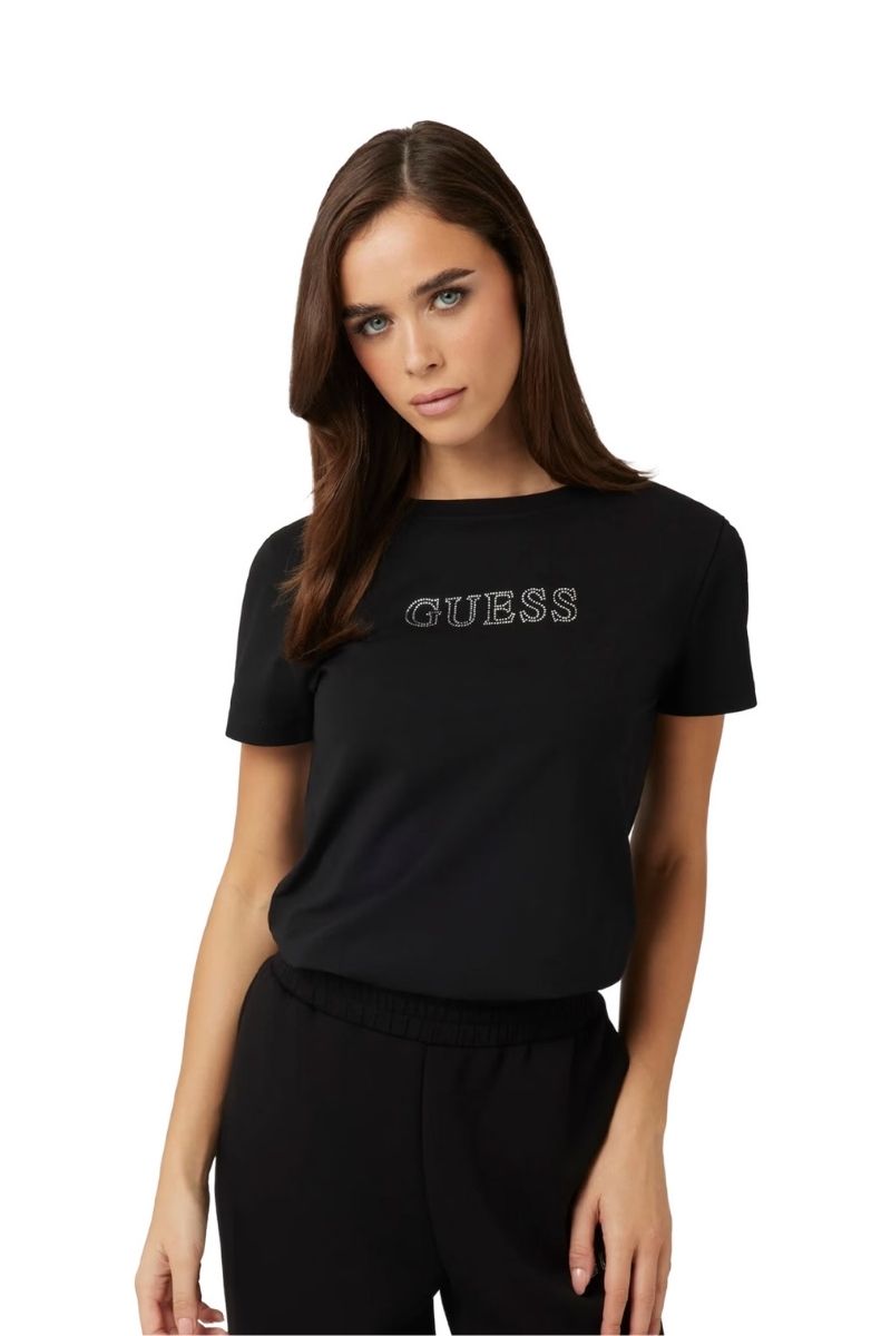 - Μπλούζα κοντομάνικη, με στρογγυλή λαιμόκοψη & τυπωμένο logo Guess μπροστά με στρας.