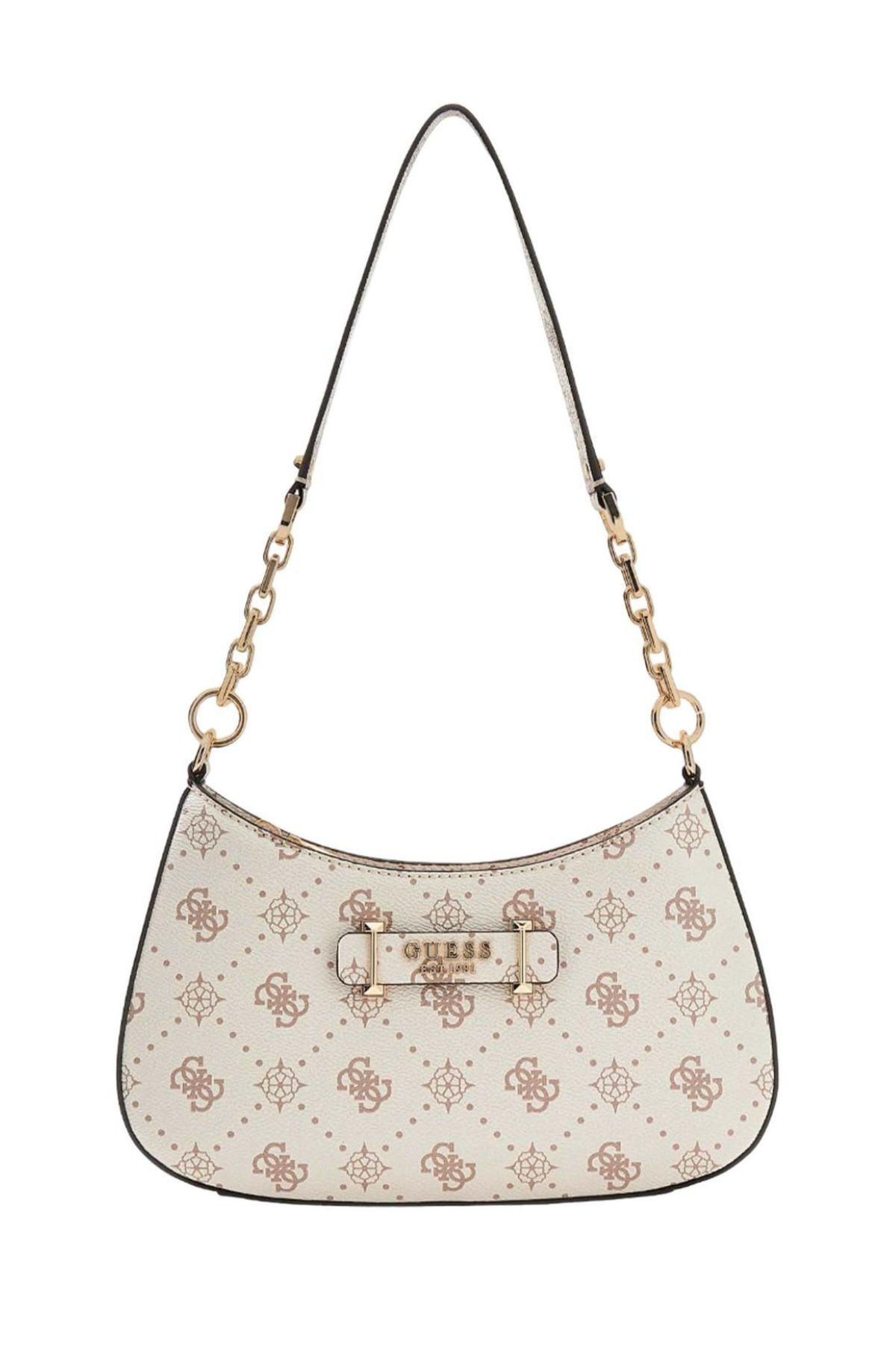 Γυναικεία τσάντα ώμου, με τύπωμα λογότυπο σε όλη την επιφάνεια, κλείσιμο με φερμουάρ και λουράκι με λεπτομέρεια αλυσίδα. Διαστάσεις: 26.5 x 13.5 x 5.5εκ. (Σύνθεση: Οικολογικό δέρμα)