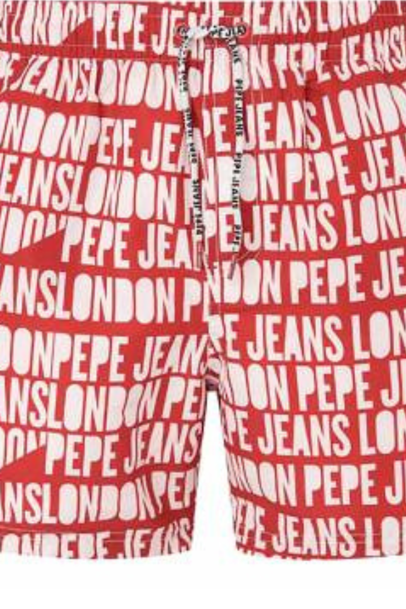 Ανδρικό μαγιό τύπου βερμούδα της εταιρίας Pepe Jeans σε κόκκινο χρώμα με print, για άνεση στην παραλία.