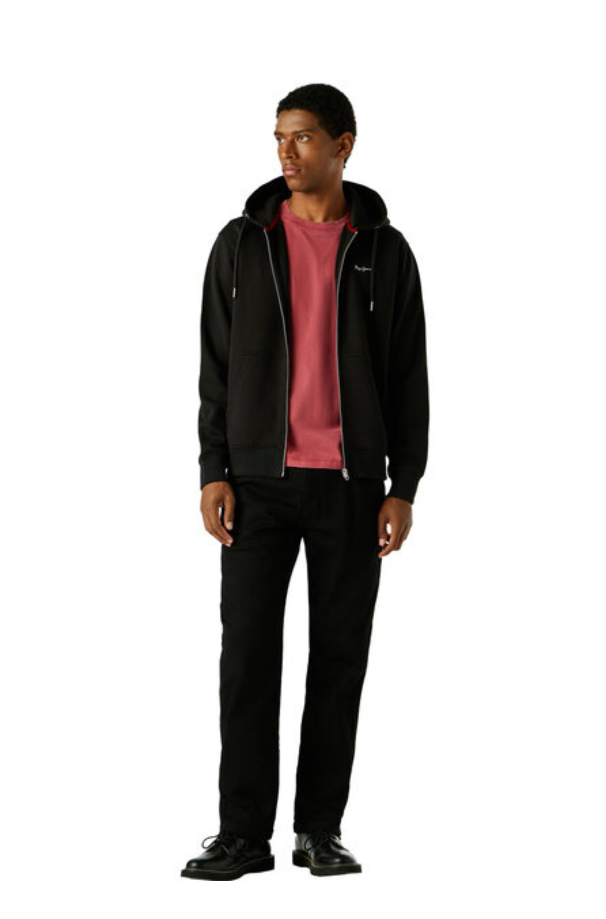 - Φούτερ ζακέτα με μακριά μανίκια, κουκούλα με κορδόνι προσαρμογής & κλείσιμο μπροστά με φερμουάρ, Δύο τσέπες στο πλάι, rib στις μανσέτες και στο τελείωμα & κεντημένο logo Pepe Jeans στο στήθος.
