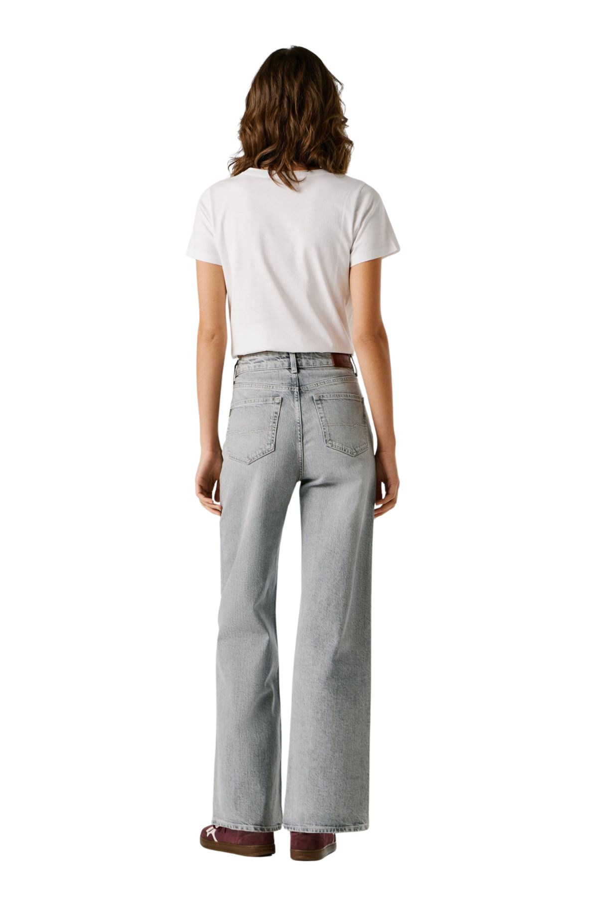 Ένα κλασικό, κομψό σχέδιο είναι αυτό που προσφέρουν αυτά τα vintage παντελόνια σε ίσια γραμμή για γυναίκες. Με εξαιρετικά ψηλή μέση και άνετη εφαρμογή στα μπατζάκια, είναι κατασκευασμένα από γκρι τζιν με απαλό φινίρισμα από πετρέλαιο για μια φυσικά φθαρμένη εμφάνιση. Τα πριτσίνια στην μπροστινή τσέπη προσθέτουν μια ξεχωριστή, μοντέρνα πινελιά.