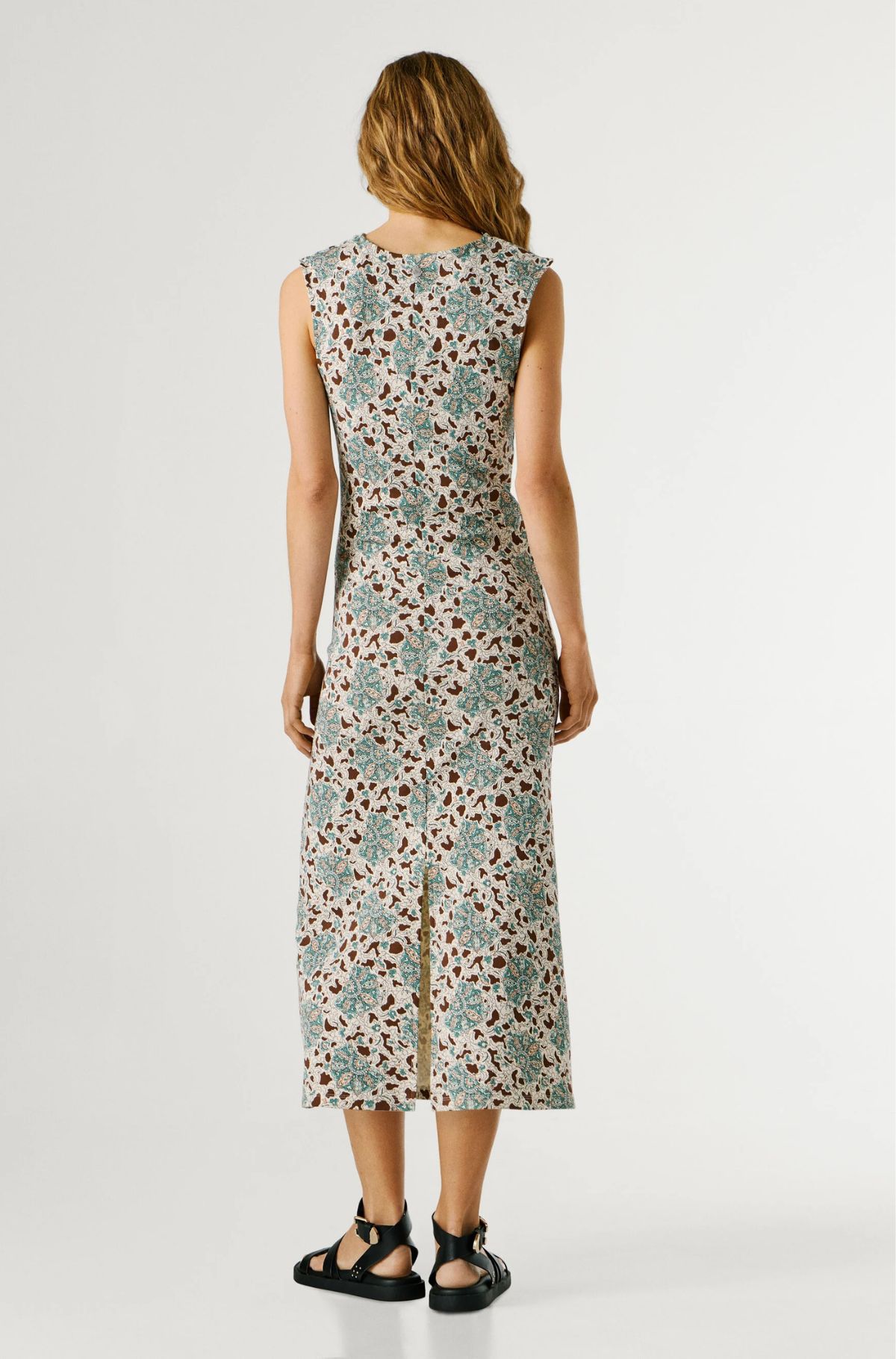 – Μακρύ φόρεμα από ελαστικό βαμβακερό ύφασμα